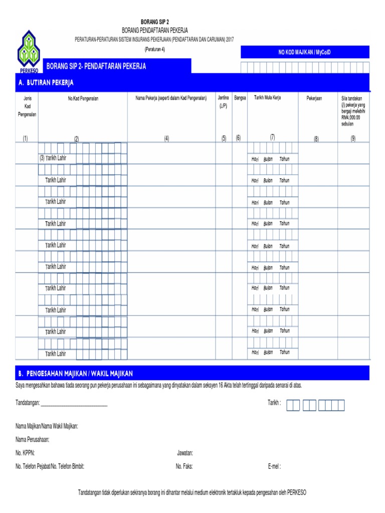 Borang Sip 2 Borang Pendaftaran Pekerja Pdf